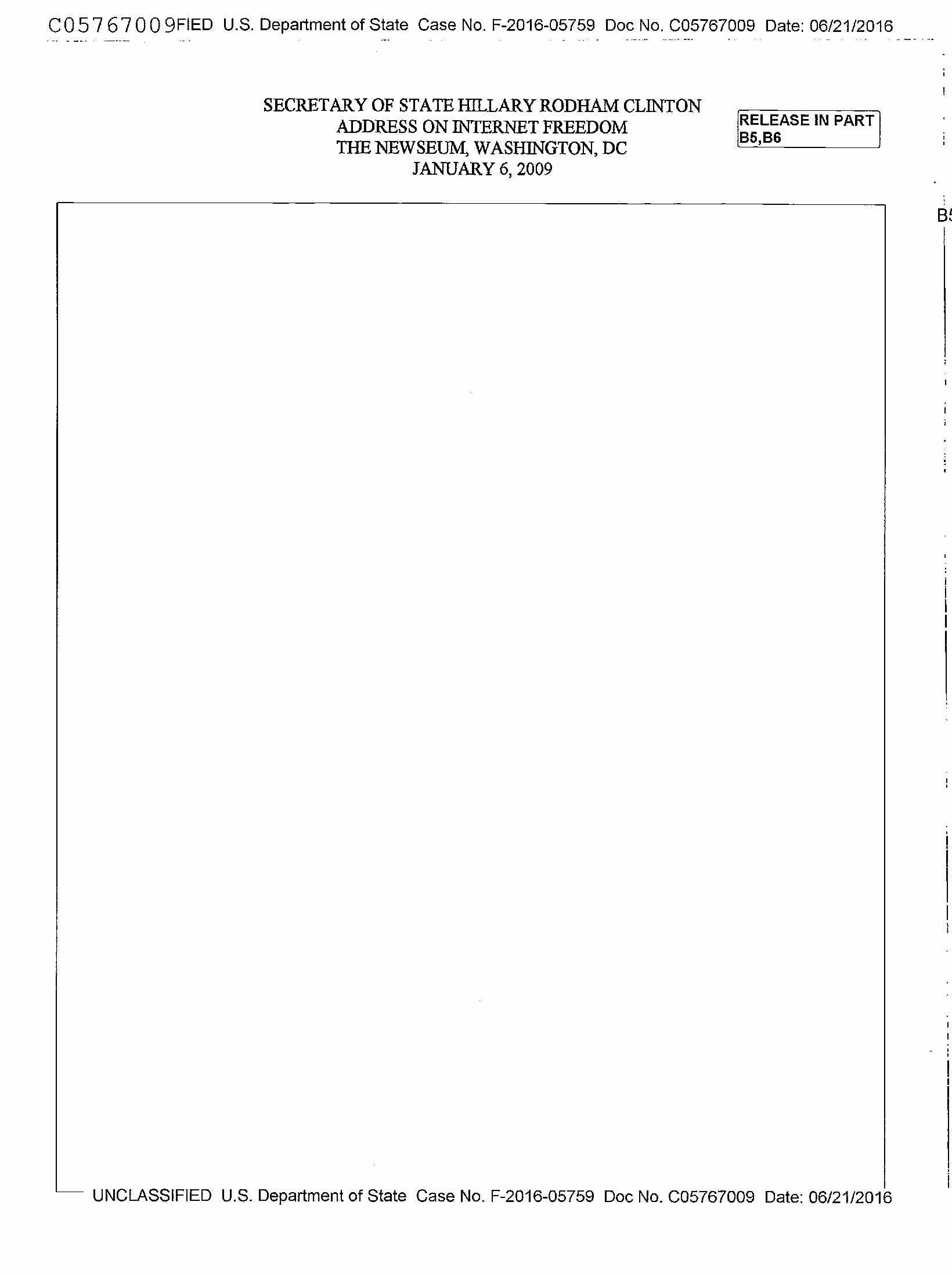 (Jun. 30, 2016)—In the wake of release of the Benghazi Committee’s findings, the State Department just refused to provide the text of Hillary Clinton’s Jan. 6 or 21, 2010 (the documents are contradictory) on Internet Freedom to the Newseum in Washington, D.C.